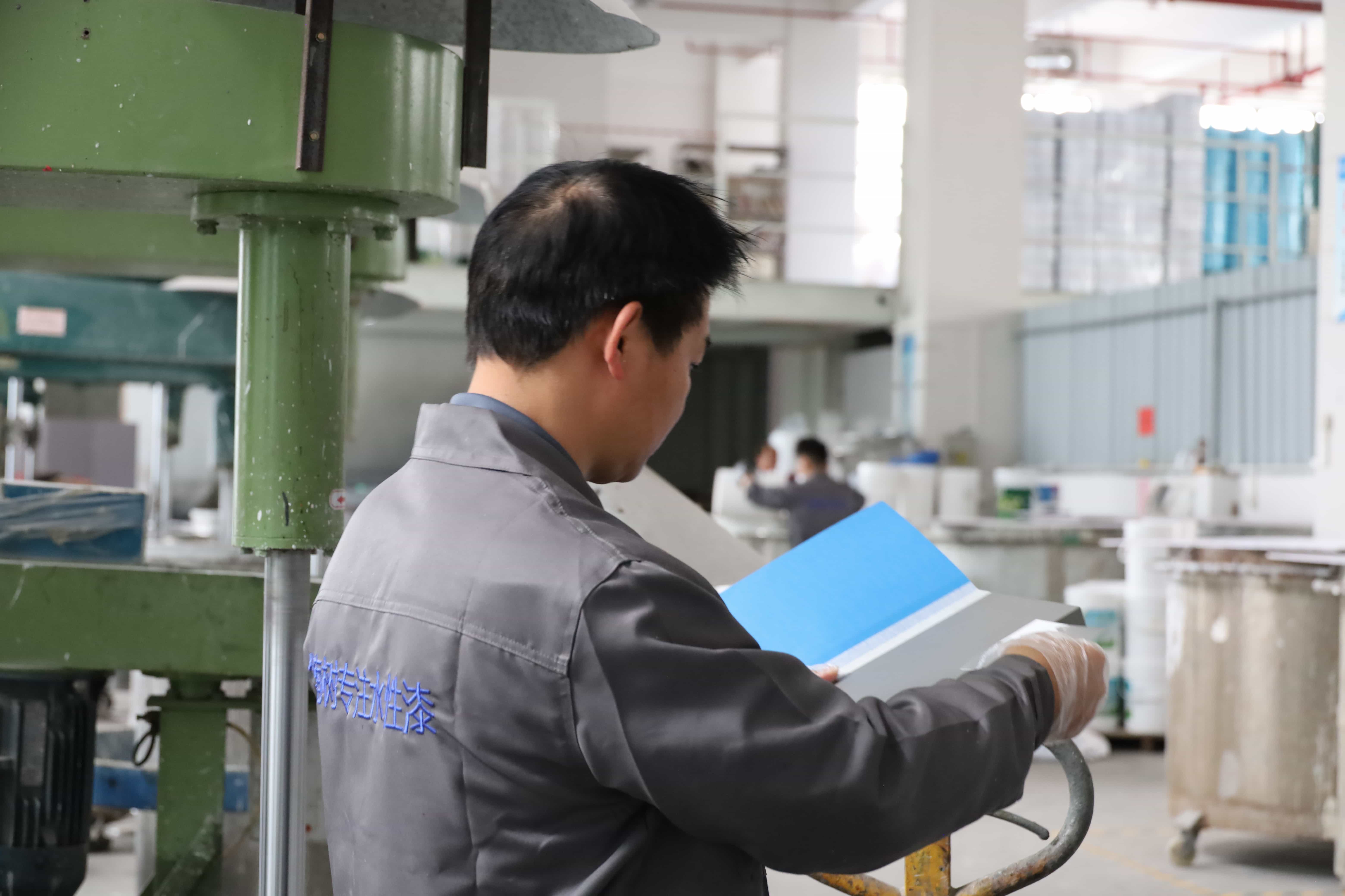 ▲华楠树金属效果水性漆的调色生产